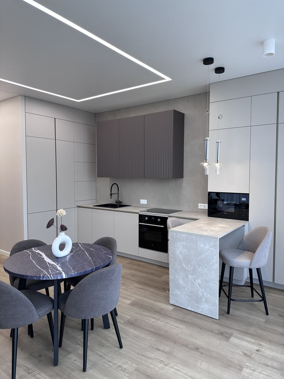Полы - очень важная часть ремонта, особенно если укладывать полы в один контур с кухней и прихожей. Именно поэтому я выбрал кварц винил, ведь он не боится воды и стойкий к механическим повреждениям. Так же кварцвинил не сильно подвержен тепловым расширениям, а это важно если укладывать в один контур (у нас 76 кв. м) Мы долго выбирали среди многих вариантов и решили выбрать бренд Fargo - цена/качество и подходящий цвет. Линейка комфорт, цвет Дуб Марракеш.